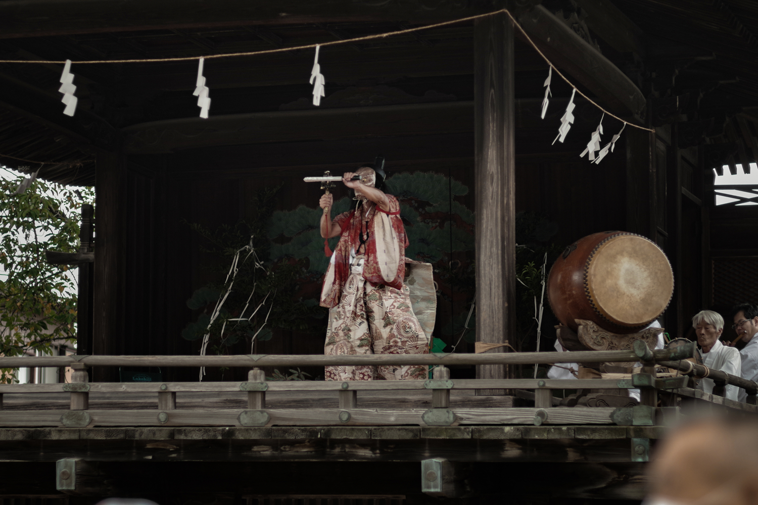 在今宮神社神樂殿還同期上演太太神樂。這種神樂發源於伊勢神宮,是在神社祭禮上奉獻給神明的神事之舞