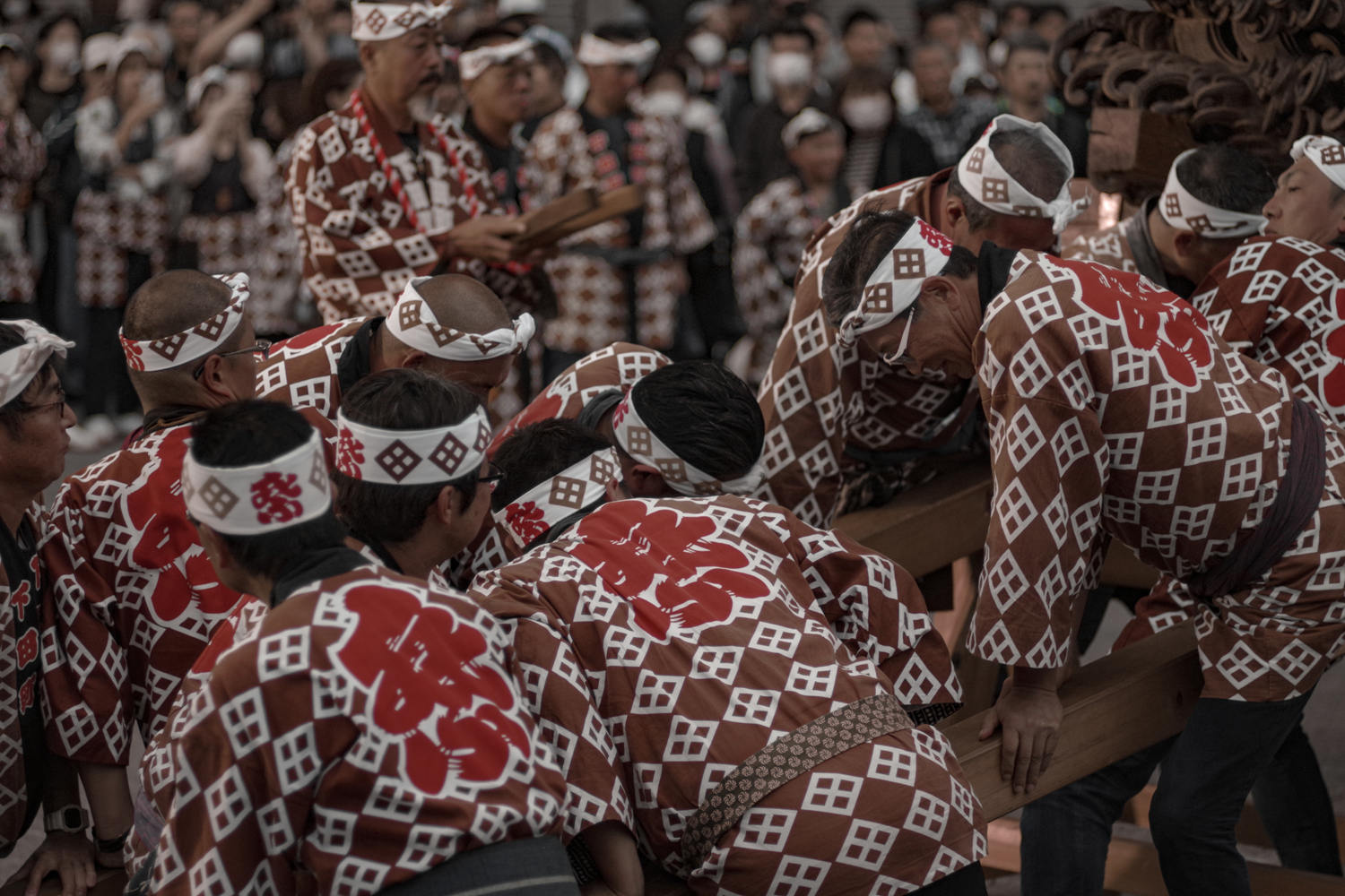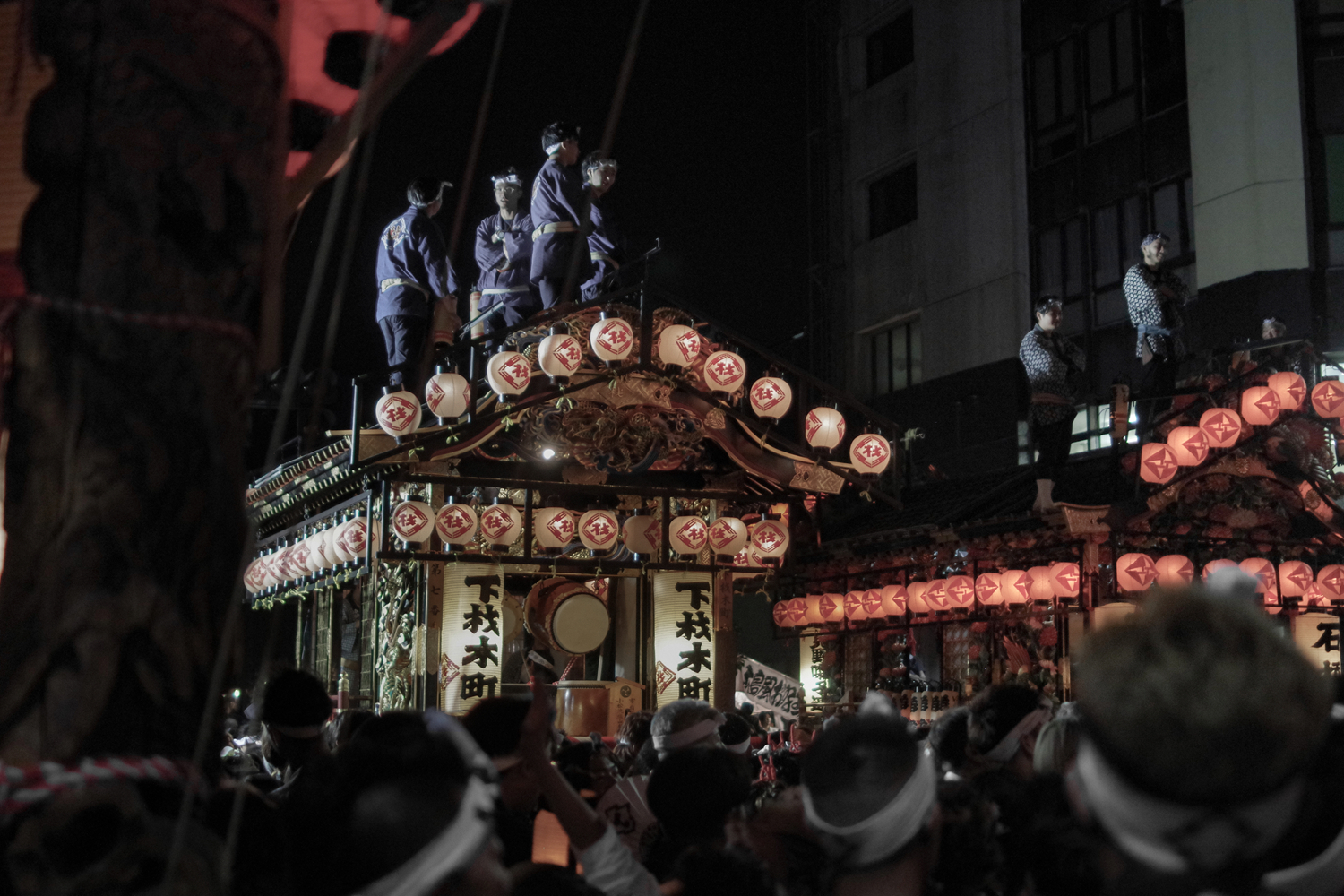 彩車巡遊最大的看點就是兩輛彩車相遇時的「狹路相逢(ぶっつけ)」環節,各自街道成員給自己喊口號打節奏,再加上囃子樂器聲,場面一度震耳欲聾