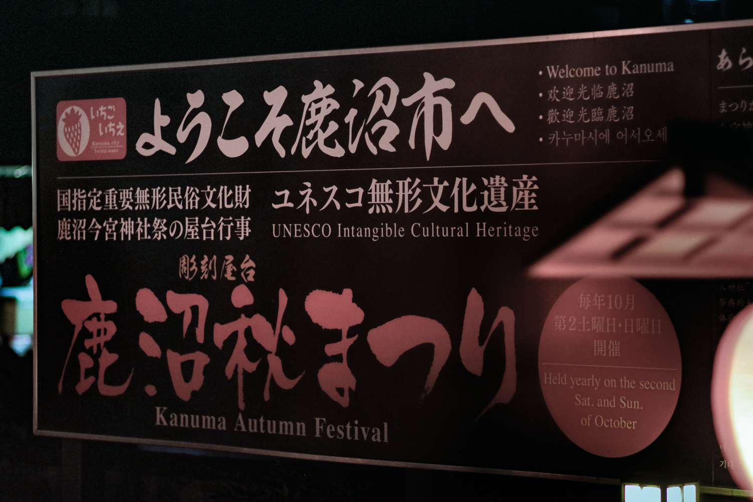 國慶節去長野的最後幾天,本來想帶老媽去看看栃木縣的世界遺產「日光神殿和廟宇」和世界非物質文化遺產「日本彩車巡遊(山・鉾・屋台行事)」33個點之一的「鹿沼秋祭(鹿沼秋まつり)」,結果最後兩天因為天公不作美,大雨傾盆,最後只看了一個鹿沼秋祭,剩下的下次補完吧。